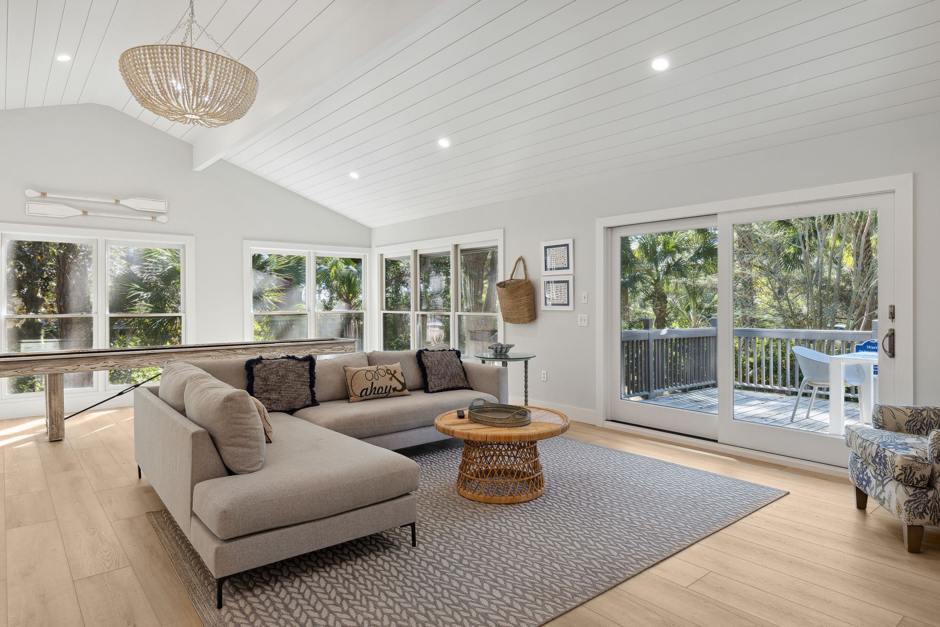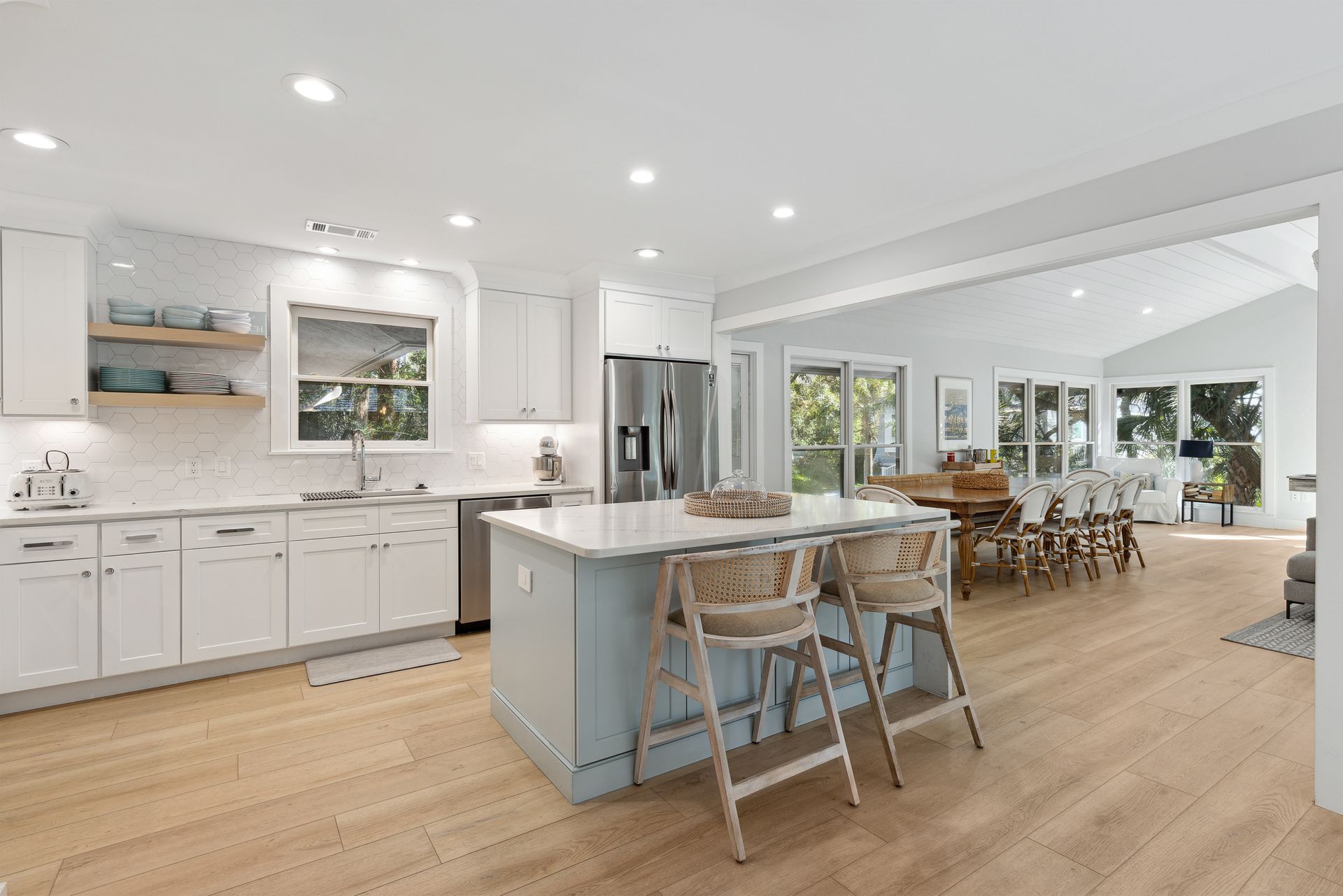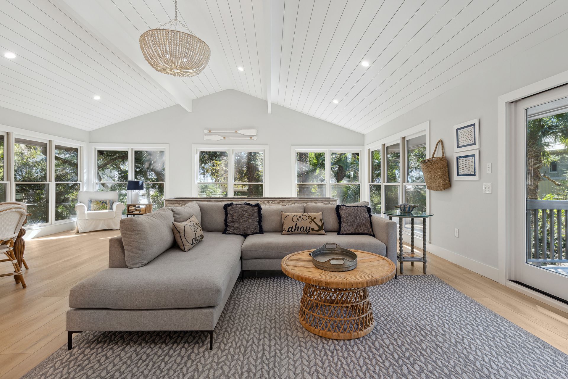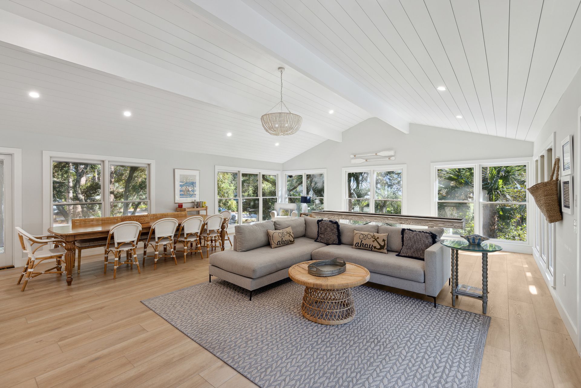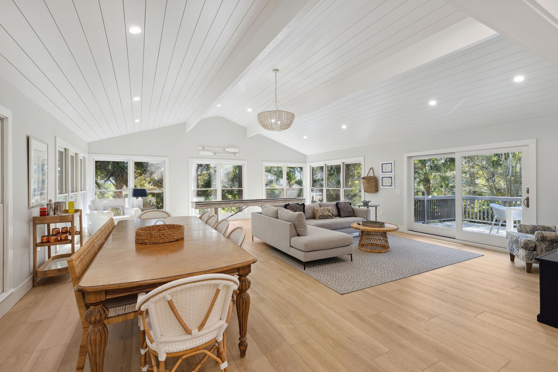 This stunning home was remodeled with a coastal chic style, featuring vaulted ceilings, shiplap accents, and an open-concept layout perfect for entertaining. The updated kitchen and bathrooms boast modern finishes, while the addition of two spacious bedrooms enhances the home's functionality. A two-story screened-in porch extends the living space, offering a serene retreat with beautiful outdoor views. The result is a stylish, airy home that combines relaxed coastal charm with contemporary comforts.