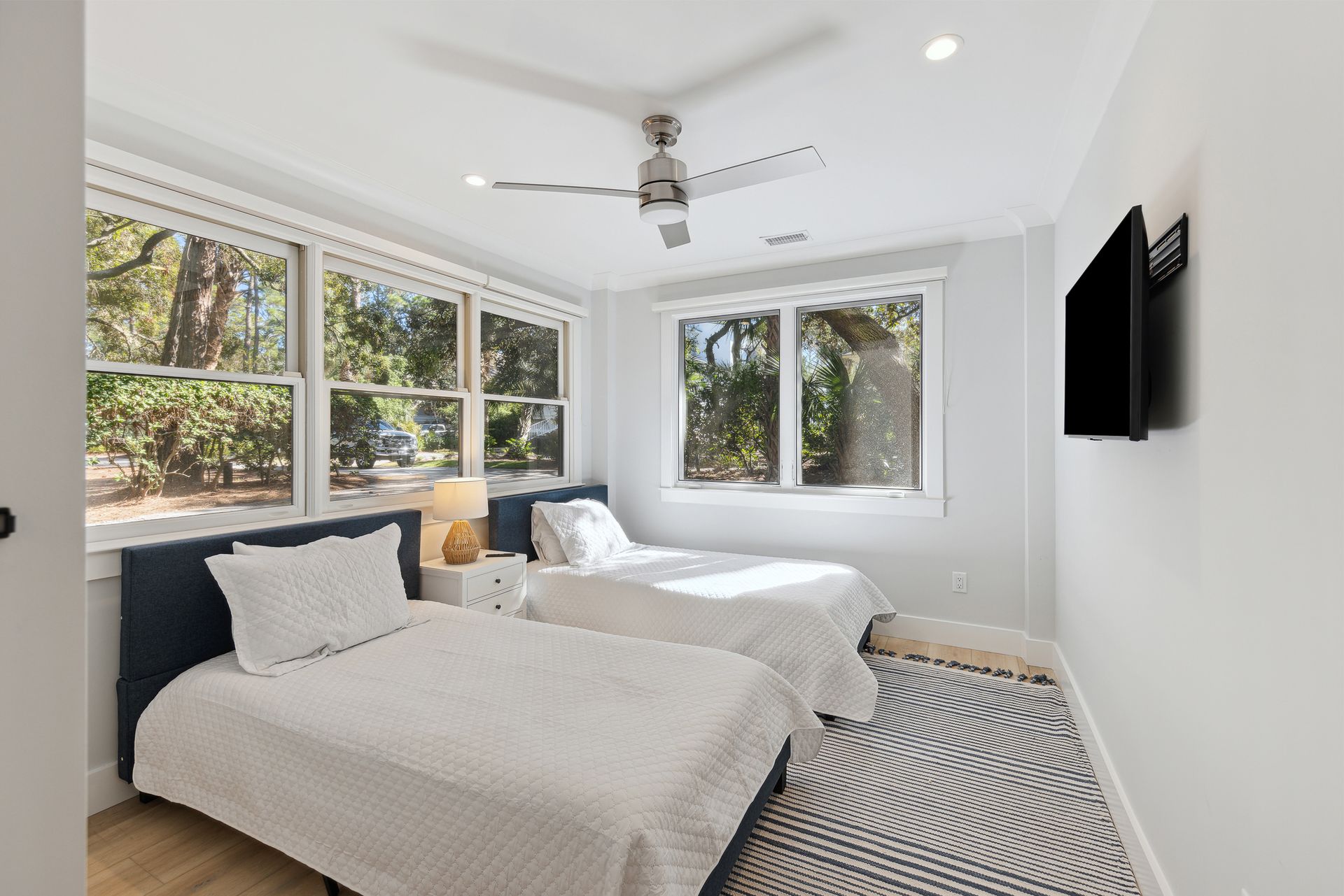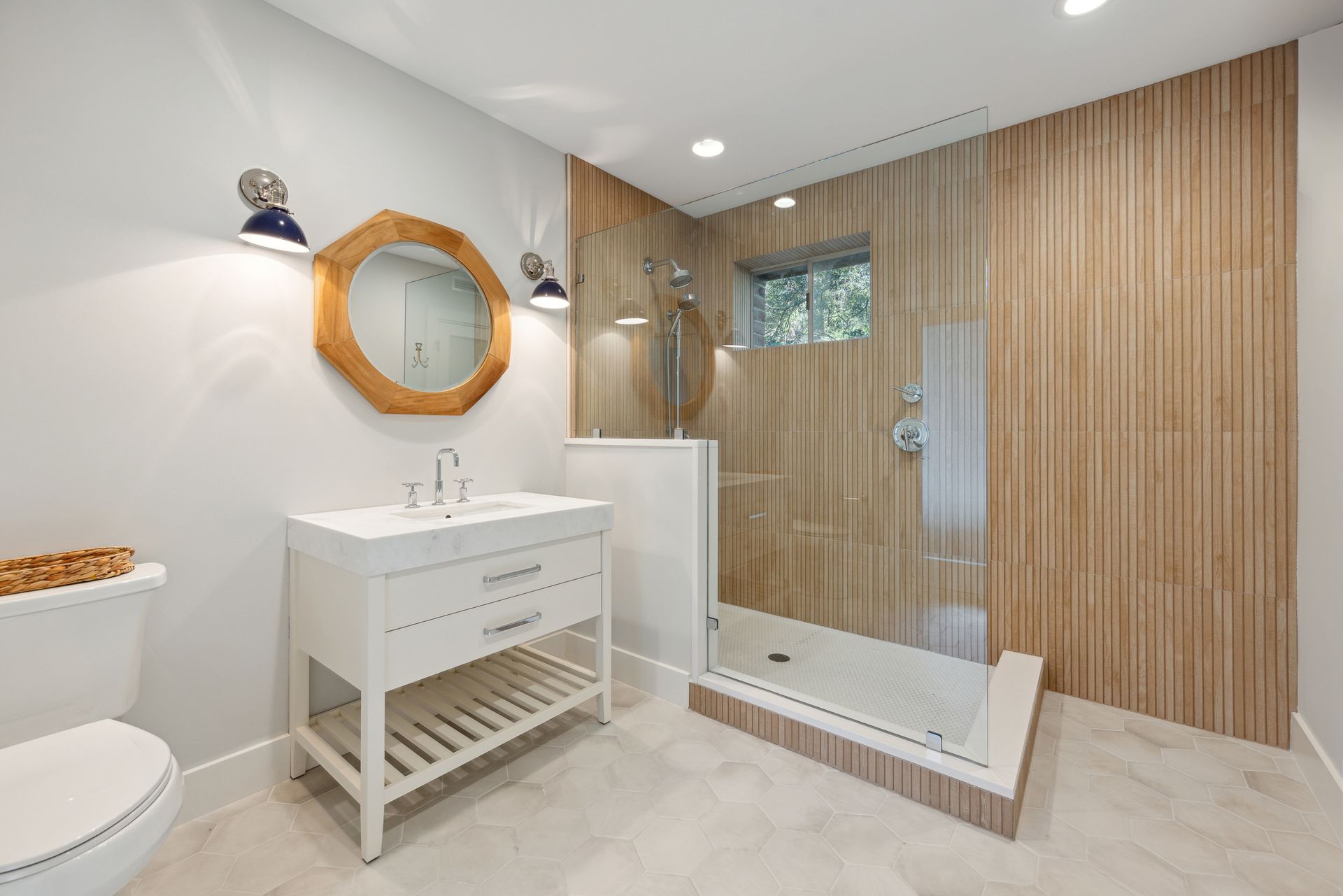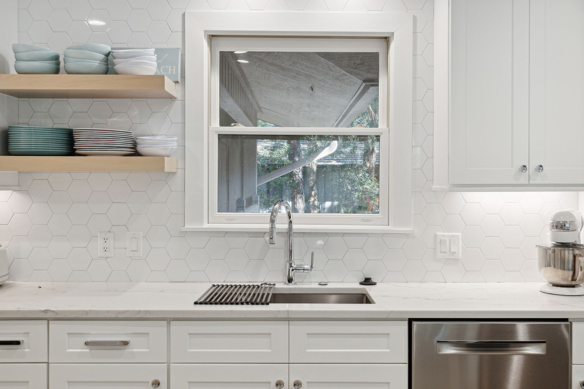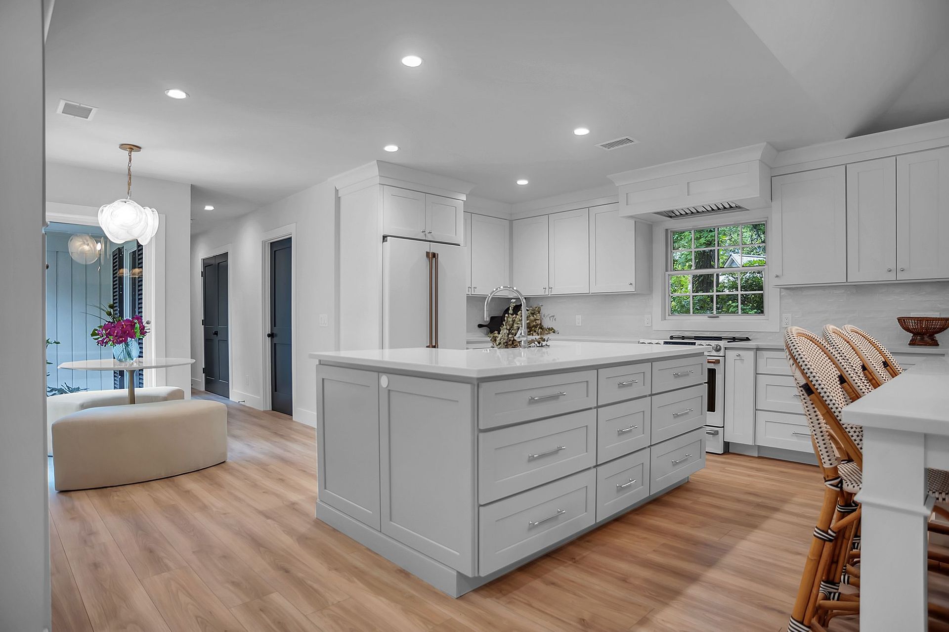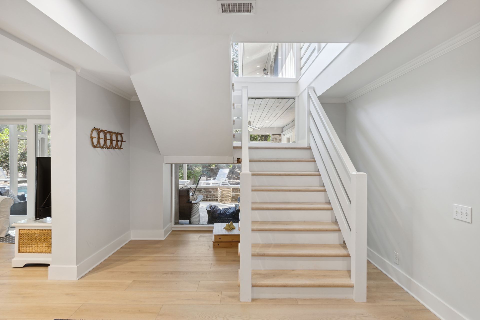 This stunning home was remodeled with a coastal chic style, featuring vaulted ceilings, shiplap accents, and an open-concept layout perfect for entertaining. The updated kitchen and bathrooms boast modern finishes, while the addition of two spacious bedrooms enhances the home's functionality. A two-story screened-in porch extends the living space, offering a serene retreat with beautiful outdoor views. The result is a stylish, airy home that combines relaxed coastal charm with contemporary comforts.