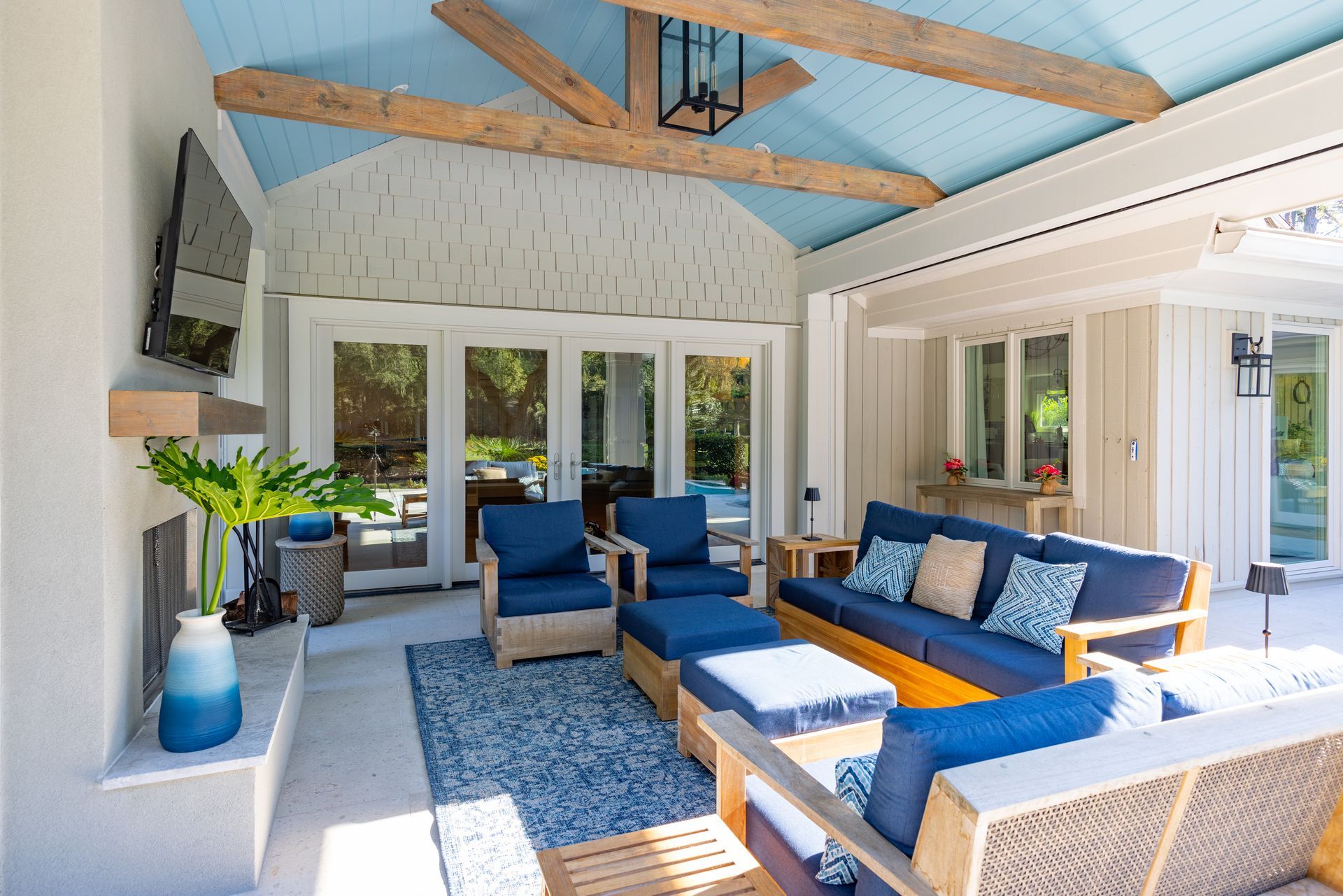 This backyard was a full remodel and a custom screened-in porch addition. The redesign included an updated terrace patio, a new porcelain pool deck with fully refurbished pool, and a new screened in porch creating a perfect space for both relaxation and entertaining. The highlight of the project was the spacious screened-in porch, featuring vaulted ceilings, retractable screens, and a wood burning fireplace—offering a comfortable, bug-free environment to enjoy year-round. The final result is a beautiful, functional outdoor living space tailored to the client's lifestyle.